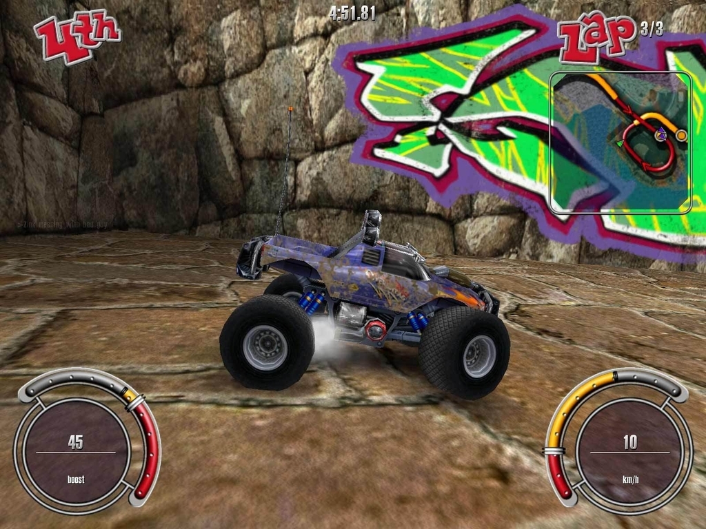 Re-Volt is a racing game in which players take control of a variety of remote controlled cars (24 in total) and race them on 14 tracks featuring realistic environments such as museums, toy stores, gardens, and suburban neighborhoods. Like many similar games, there were powerups your car could collect to either give yourself an advantage or slow down an opponent.